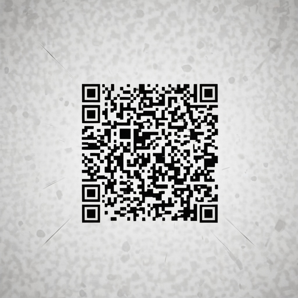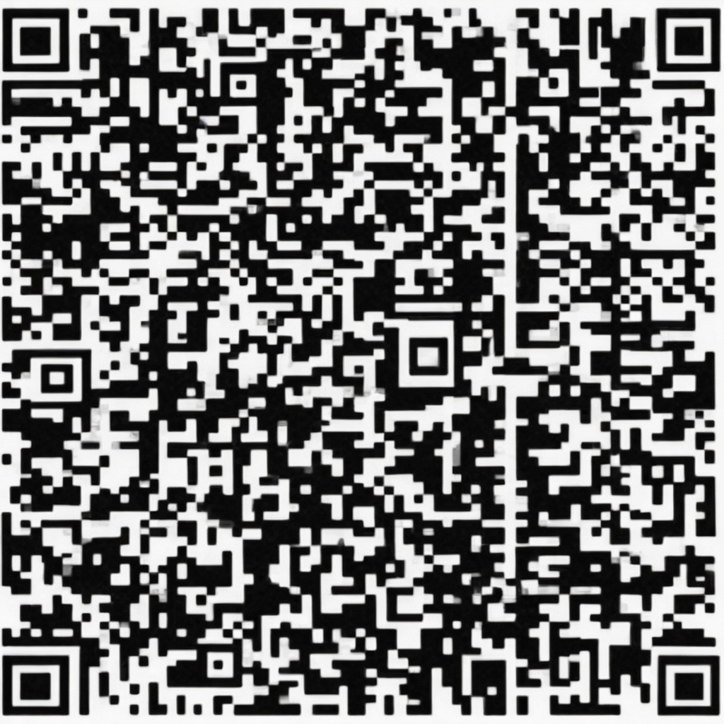 A QR code, consisting of black squares arranged on a white background. The squares are arranged in a grid, with smaller squares in three of the corners. These smaller squares are wrapped by white and black boxes forming an "L" shape. This is the standard for QR codes. The black squares inside the grid are seemingly random but encode information when scanned. The QR code is square-shaped and of medium size.