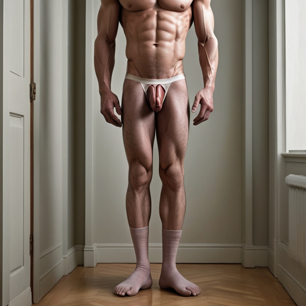 A penis so large it hangs between his knees
